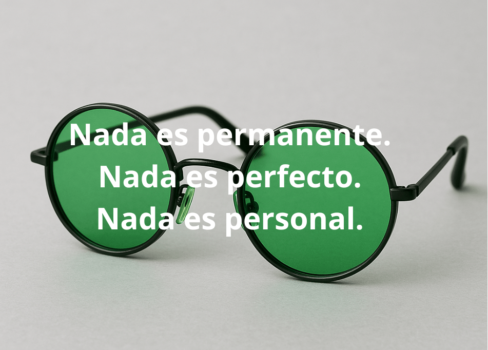Ante una situación que te esté generando estrés o resistencia, ponte los lentes recordando que: nada es permanente, nada es perfecto, nada es personal.